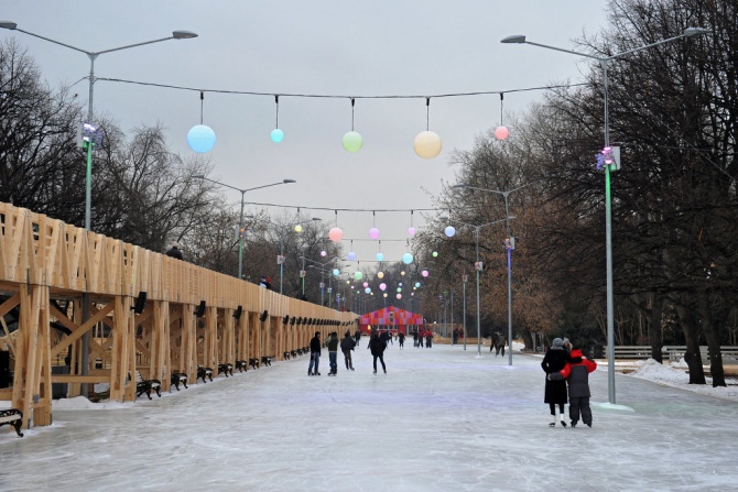 В городе Калининград в Центральном парке культуры и отдыха находится ледовый каток. Его расположение - на площадке между детским фонтаном и памятником Владимиру Высоцкому. На территории катка работает прокатный пункт. В наличие имеются только новые качественные модели коньков, нужный размер которых может подобрать себе каждый. Имея при себе собственные коньки, желающие могут наточить их при необходимости. Также в прокате есть специальные тренажеры для самых маленьких гостей или для тех, кто пока еще не научился кататься на коньках. Гладкий, чистый и идеально ровный лед своевременно проходит обработку специальным оборудованием по разработкам новейших технологий. Поэтому катание на коньках доставит только море позитивных эмоций и однозначно поднимет настроение.